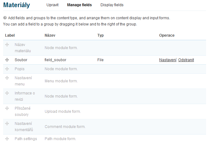 pokouším se vytvořit svůj vlastní modul, ale narazil jsem na drobný problém, se kterým mi google moc nepomohl (asi blbě hledám :) ). V modulu si definuji vlastní content-type formulář, ale nemohu zanic dojít na to, abych mohl potom v nastevení tohoto typu obsahu změnit popisky u polí $form[„items“] a $form[„category“] (jde to pouze u title a body – asi jsou nějak defaultně nastaveny. V kódu to jsou pole $form[„title“] a $form[„body“]) viz obr. editace_popisku_typu_obsahu.gif . Také tato pole nevidím v seznamu v „manage fields“ viz obr manage_fields.gif